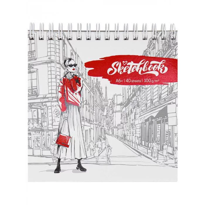 Скетчбук А6+ Девушка в Париже (жест подложка, мягкая обл, 40 л, 100г) (айвори) С40-4231