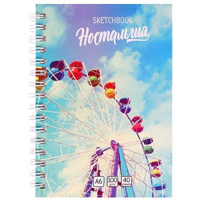 Скетчбук А6 Ностальгия Аттракцион (7БЦ, гл лам, гребень, 40л, 100 г) С80-6344