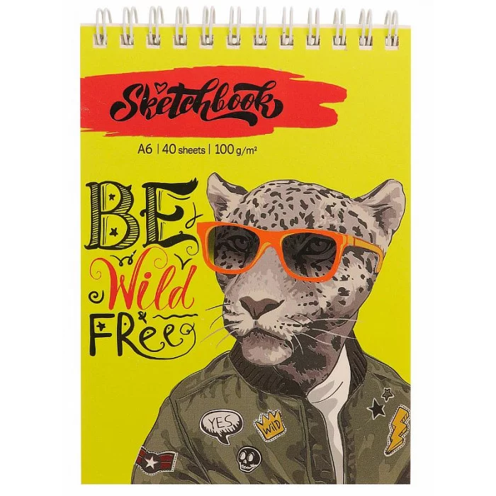 Скетчбук А6 Животные. Леопард в очках (жест подложка, мягкая обл, 40 л, 100г) С40-4603