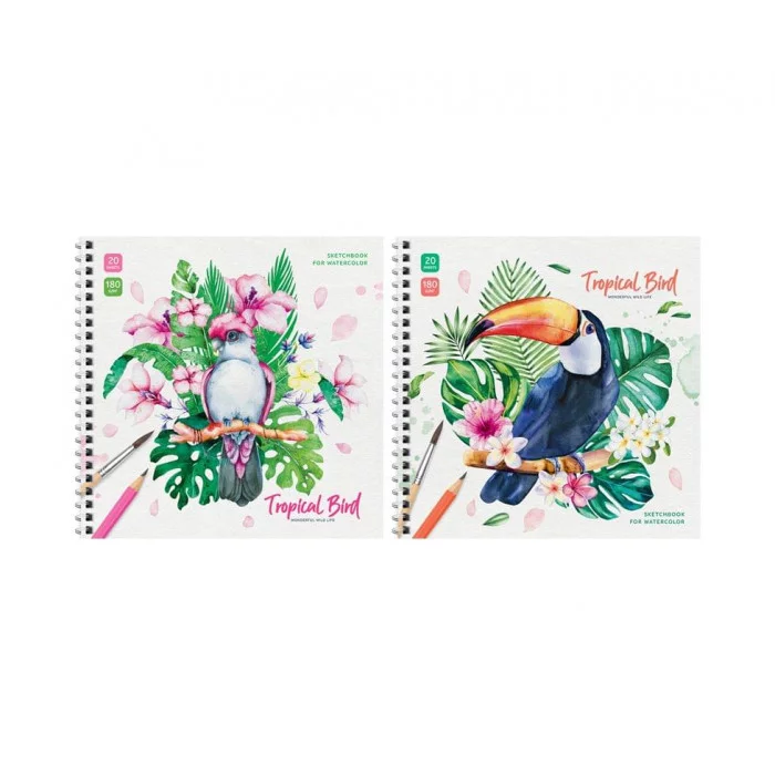 Скетчбук для акварели 20л., 190*190 ArtSpace "Tropical Bird", на гребне, 180г/м2 315917