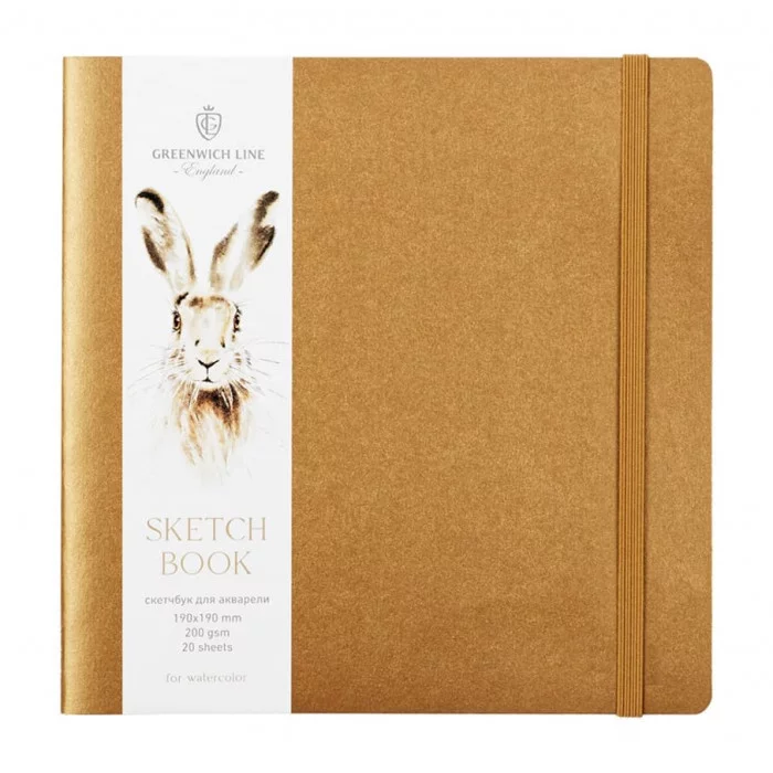 Скетчбук для акварели 20л., 190*190 Greenwich Line, золотой, 200г/м2, на резинке 321989