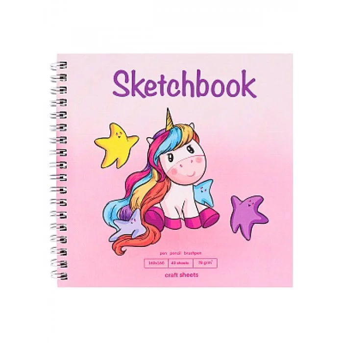 Скетчбук Единорог160х160,мел картон,лён+мат лам,гребень слева,жест.подл,40л,78г(крафт блок) С40-4831