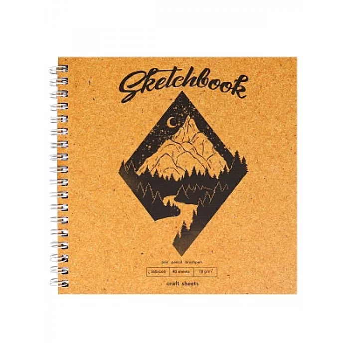 Скетчбук Гора160х160,мел картон,лён+мат лам,гребень слева,жест подл.,40л,78г(крафт блок) С40-4836