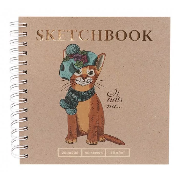 Скетчбук KRAFT 200х200 Кошка (7БЦ, крафт обложка, тиснение, гребень, 96л, крафт блок, 78г) С96-1655