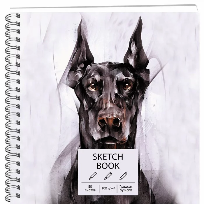 Скетчбук с твердой обложкой 195х195 80л 7БЦ, мат.ламин. Широкая евроспираль. Бумага–офсет 100г/м2, белая, без линовки.По 4 шт в термоусад. пл. Уп.гофр. Доберман ТС805078