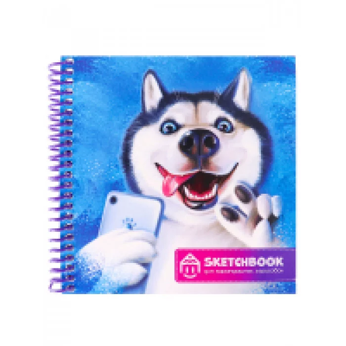 Скетчбуки А6+ для карандаш зарис Хаски (спираль слева, гл лам, мяг.обл, жест подл, 64л, 60г) С64-5279