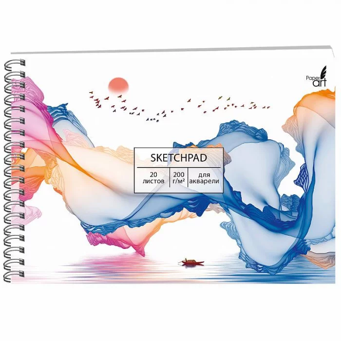Скетчпад для акварели, А5 (140х200) 20л. Евроспираль. Обл.мел.карт.,ламин.soft touch. Подложка:переплет.карт. Блок:акварель.бум.200г,белая. Перфорация. "Акварель"