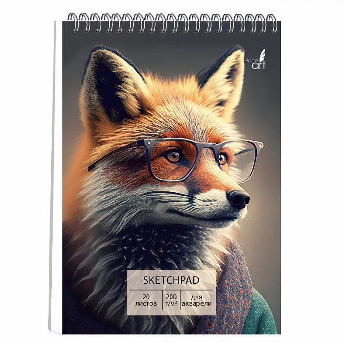 Скетчпад для акварели, А5 (140х200) 20л. Евроспираль. Обл.мелов.картон. Подложка: переплет.картон. Блок: акварельная бумага 200г/м2, белая. Перфорация. "Мистер Лис"