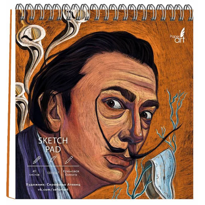 Скетчпад (145 х160 мм), 40л. Евроспираль. Обложка: мелованный картон, выборочный лак. Блок: кремовый офсет 100г/м2. "Гений (Эксклюзив)"