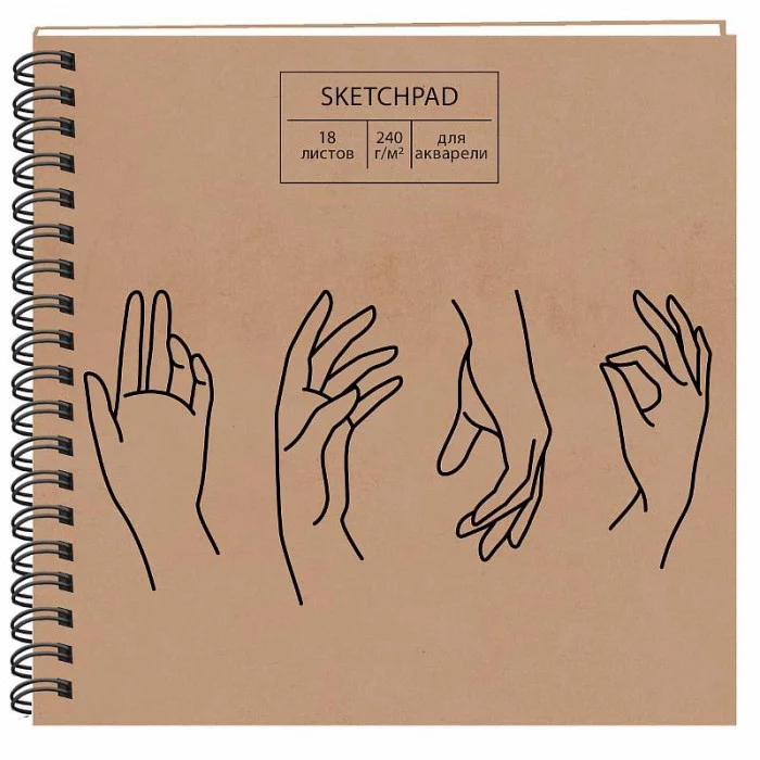 Скетчпад для акварели 190х190мм 18л.Евроспираль. Обл.- крафт-картон, тиснение черной фольгой. Блок: акварельная бумага 240г/м2 с перфорацией. "Craft life. Дизайн 3"