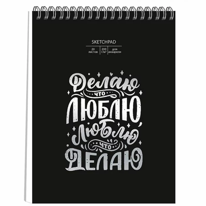 Скетчпад для акварели А4 (210х286) 20л. Евроспираль. Обл.черн.тон.карт,тисн.фольгой серебро. Подложка:пер.карт. Блок:акварель.бум.200г,белая. Перфорац. "На своей волне"