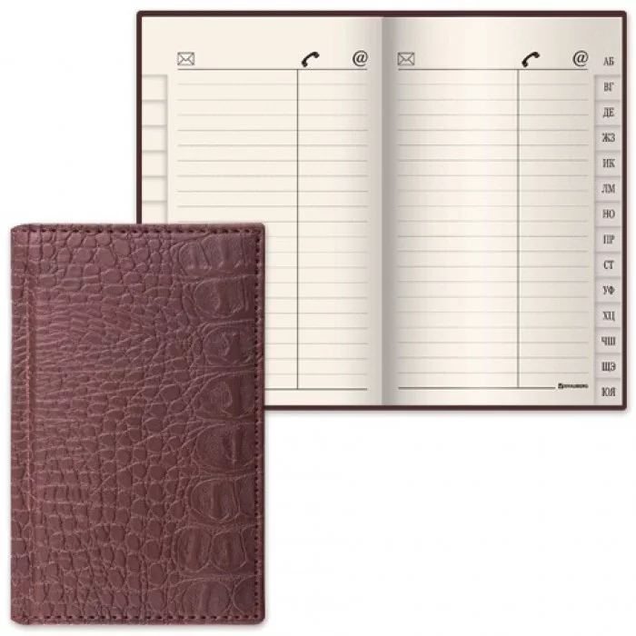 Телефонная книжка А7 80*130мм, 56л, BRAUBERG ВЫР.АЛФАВИТ, "Cayman", под крок.кожу, коричневая, 125135