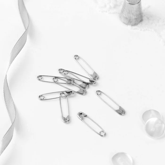 Английская булавка — универсальный помощник в быту, при шитье и рукоделии. Она пригодится для закалывания материала, драпировки ткани, создания украшений. С ней вы можете прикрепить к одежде или домашнему текстилю мягкие аксессуары. Острый край булавки прячется в безопасную петельку, она не уколет и прослужит вам очень долго.
