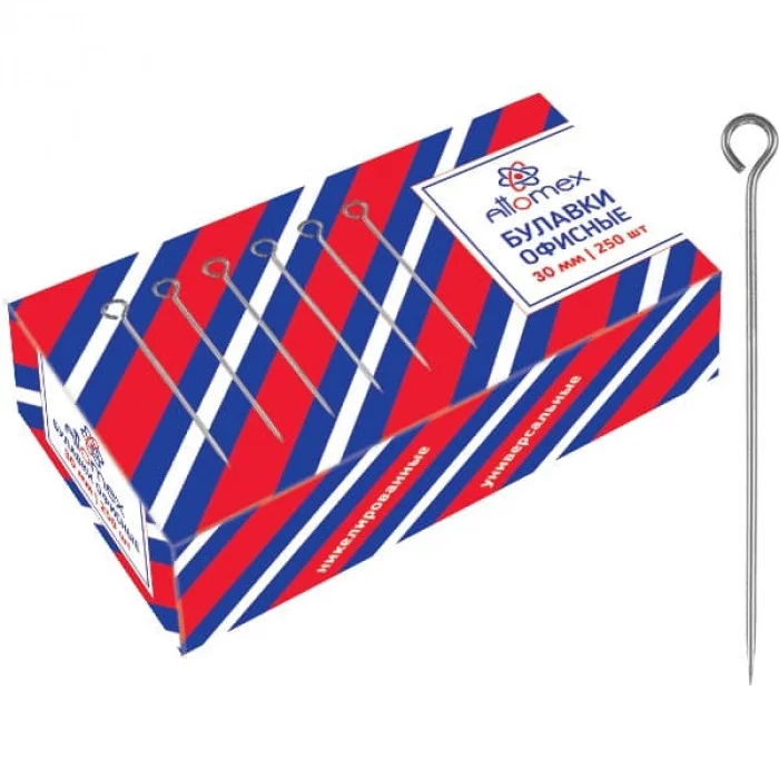 Булавки офисные 30 мм, 250 шт в картонной коробке