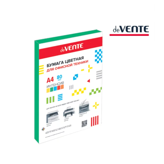 Бумага цветная для офисной техники "deVENTE" A4 100 л, 80 г/м², интенсив зеленый, в пластиковом пакете