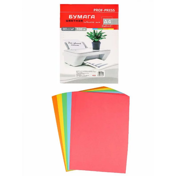 Данная цветная бумага предназначена для использования в принтерах, копировальных машинах, МФУ и других видах печатной техники. Подходит как для офиса, так и для дома. Может использоваться при оформлении писем и приглашений, в качестве разделителей для архивации, а также для детского творчества (изготовления поделок и аппликаций). В пачке 100 листов формата А4. Цвет: ассорти. Плотность бумаги: 80 г/м2.