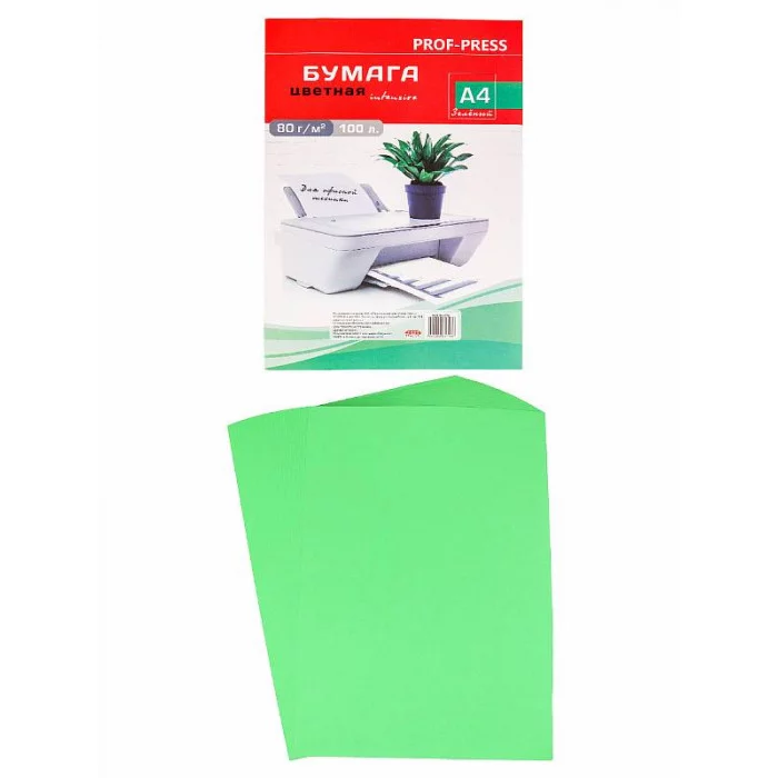 Данная цветная бумага предназначена для использования в принтерах, копировальных машинах, МФУ и других видах печатной техники. Подходит как для офиса, так и для дома. Может использоваться при оформлении писем и приглашений, в качестве разделителей для архивации, а также для детского творчества (изготовления поделок и аппликаций). В пачке 100 листов формата А4. Цвет: зелёный. Плотность бумаги: 80 г/м2.