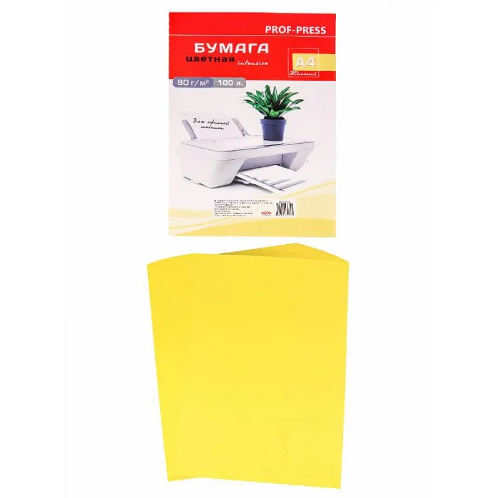 Данная цветная бумага предназначена для использования в принтерах, копировальных машинах, МФУ и других видах печатной техники. Подходит как для офиса, так и для дома. Может использоваться при оформлении писем и приглашений, в качестве разделителей для архивации, а также для детского творчества (изготовления поделок и аппликаций). В пачке 100 листов формата А4. Цвет: жёлтый. Плотность бумаги: 80 г/м2.