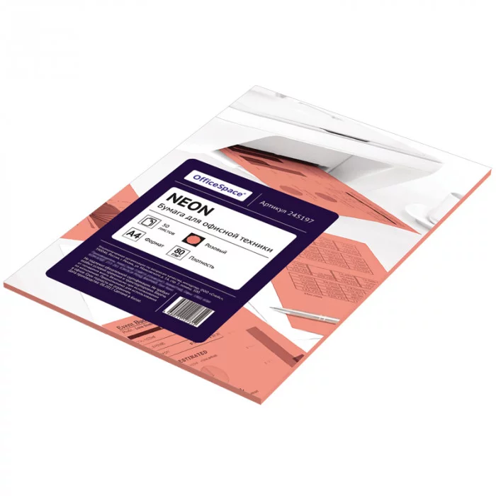 Бумага цветная OfficeSpace neon А4, 80г/м2, 50л. розовый Спейс 245197