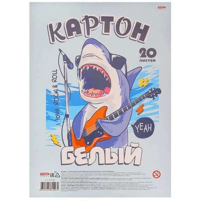 Картон белый А4 20л. АКУЛА-МУЗЫКАНТ (20-4406) в спайке 20-4406