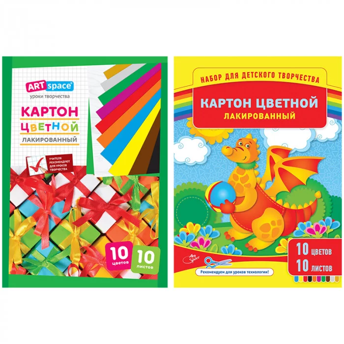 Картон цветной A4, ArtSpace, 10л., 10цв., лакированный, в папке Спейс 220684