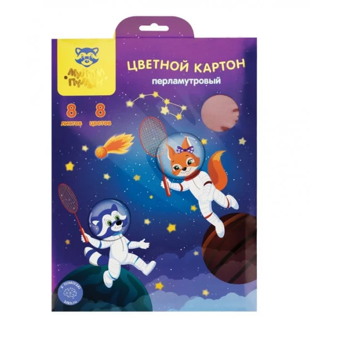 Картон цветной А4, Мульти-Пульти, 8л., 8цв., перламутровый, в папке, "Енот в космосе" КЦп8-8_44861