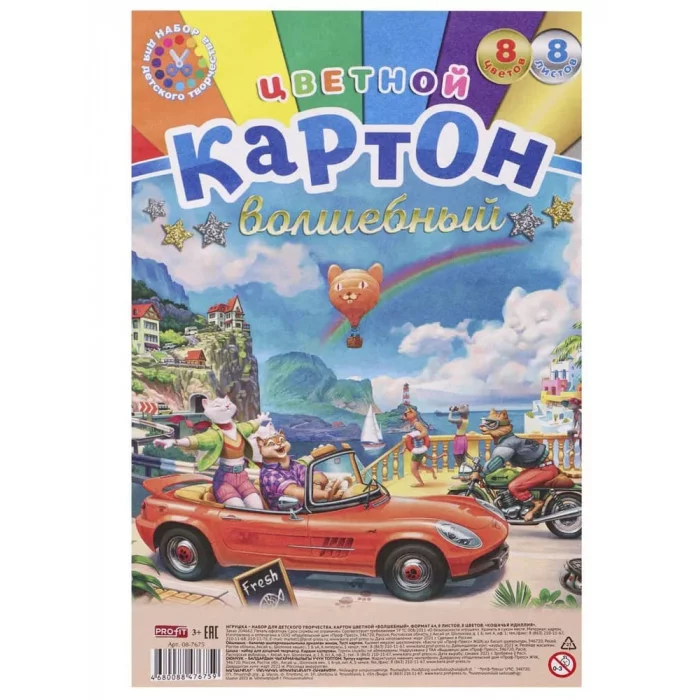 НАБОР ДЛЯ ДЕТ.ТВОРЧЕСТВА Карт цвет"ВОЛШЕБНЫЙ"А4 8л. КОШАЧЬЯ ИДИЛЛИЯ (08-7675) КБС,с+з+6ц TM"Profit" 08-7675