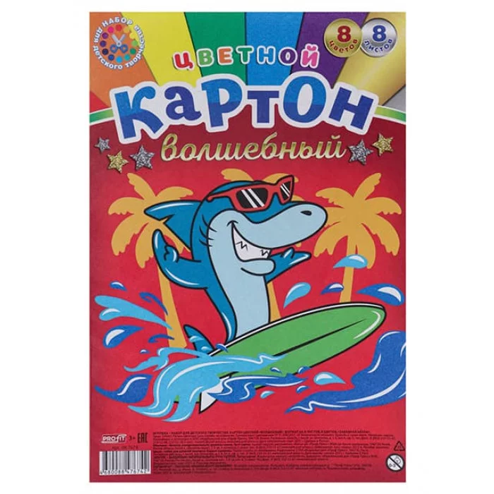 НАБОР ДЛЯ ДЕТ.ТВОРЧЕСТВА Карт цвет"ВОЛШЕБНЫЙ"А4 8л. ЗАБАВНАЯ АКУЛА (08-7674) КБС,с+з+6ц TM"Profit" 08-7674