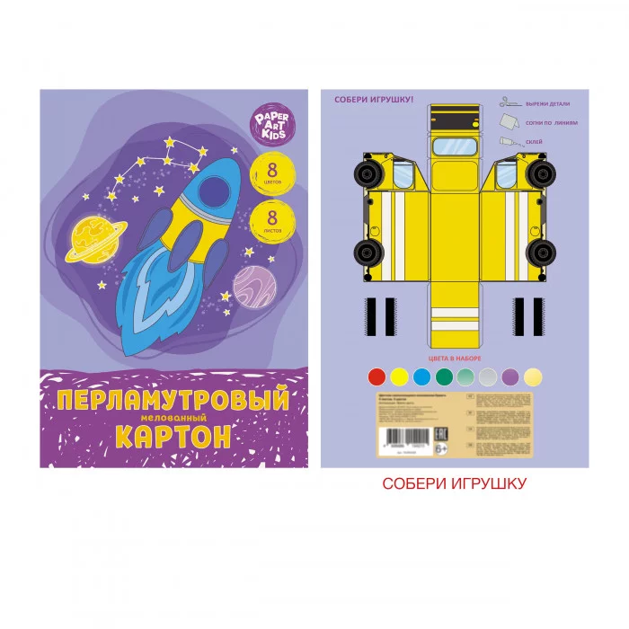 Набор перламутрового мелованного картона 8л.8цв. Ракета Формат 200х280 мм. ЦКПМ88558