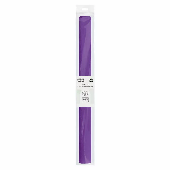 Бумага крепированная ТРИ СОВЫ, 50*250см, 32г/м2, фиолетовая, в рулоне, пакет с европодвесом 334843