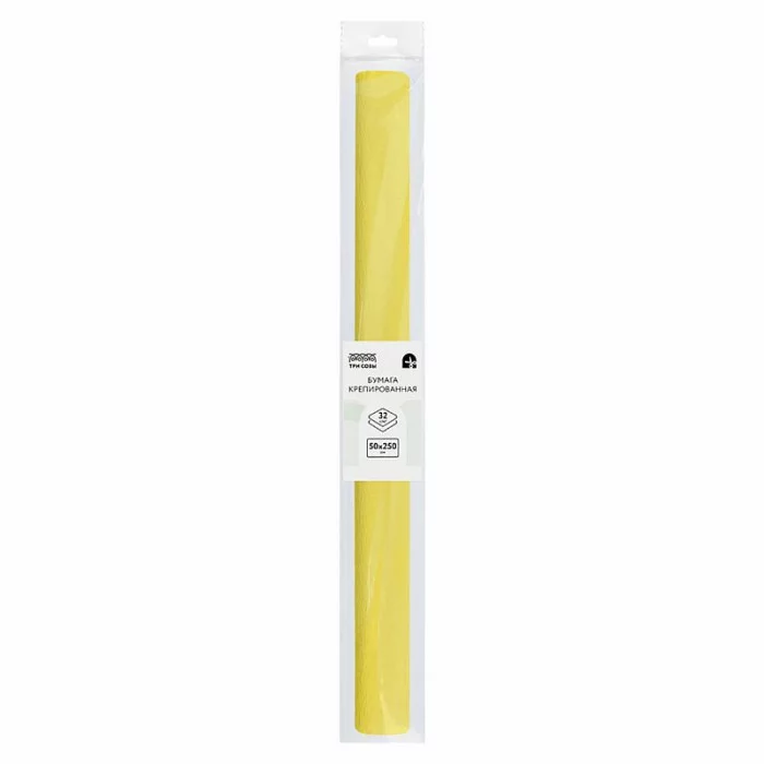 Бумага крепированная ТРИ СОВЫ, 50*250см, 32г/м2, лимонная, в рулоне, пакет с европодвесом 334831