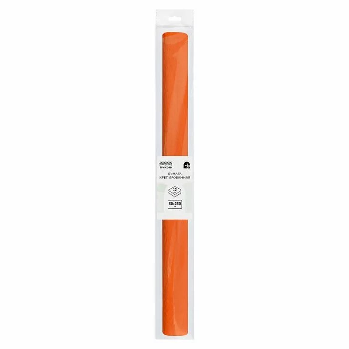 Бумага крепированная ТРИ СОВЫ, 50*250см, 32г/м2, оранжевая, в рулоне, пакет с европодвесом 334835