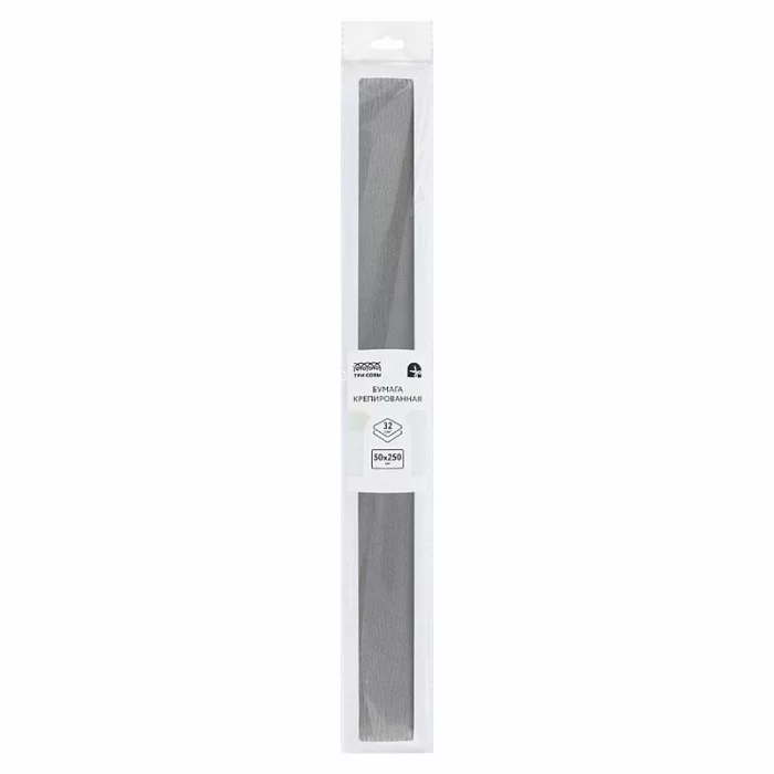 Бумага крепированная ТРИ СОВЫ, 50*250см, 32г/м2, серая, в рулоне, пакет с европодвесом 334860