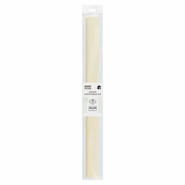 «ТРИ СОВЫ» – время с пользой! Крепированная бумага в рулоне «ТРИ СОВЫ» – отличный выбор для творчества. Полотно цвета шампань шириной 50 см и плотностью 32 г/м2 имеет длину 2,5 метра и упаковано в прозрачный пакет с европодвесом. Бумага тонкая, с мелким гофром и растяжением 60%. Товар отличается высоким качеством и не оставляет следов краски. Крепированная бумага «ТРИ СОВЫ» отлично подойдет не только для упаковки букетов и подарков, но и для создания праздничных украшений и поделок. Плотность: 32 г/м2; Размер: 50*250 см; Цвет: шампань.