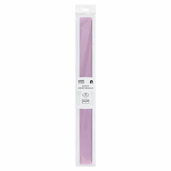 Бумага крепированная ТРИ СОВЫ, 50*250см, 32г/м2, светло-сиреневая, в рулоне, пакет с европодвесом 334841