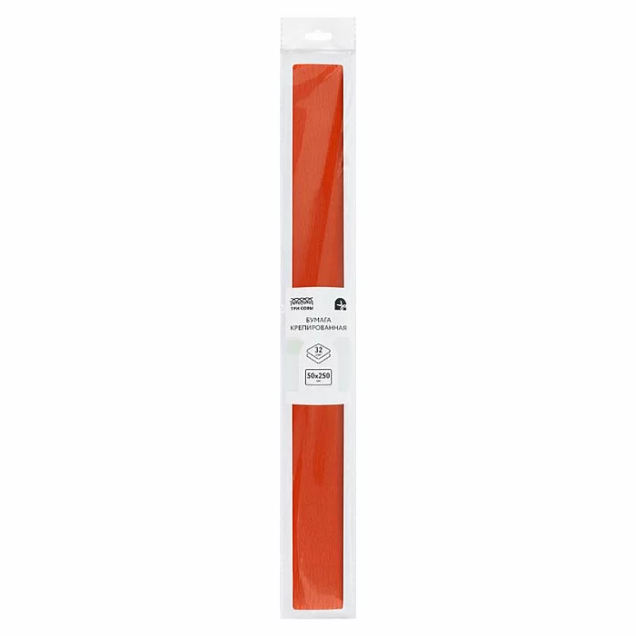 Бумага крепированная ТРИ СОВЫ, 50*250см, 32г/м2, темно-оранжевая, в рулоне, пакет с европодвесом 334836