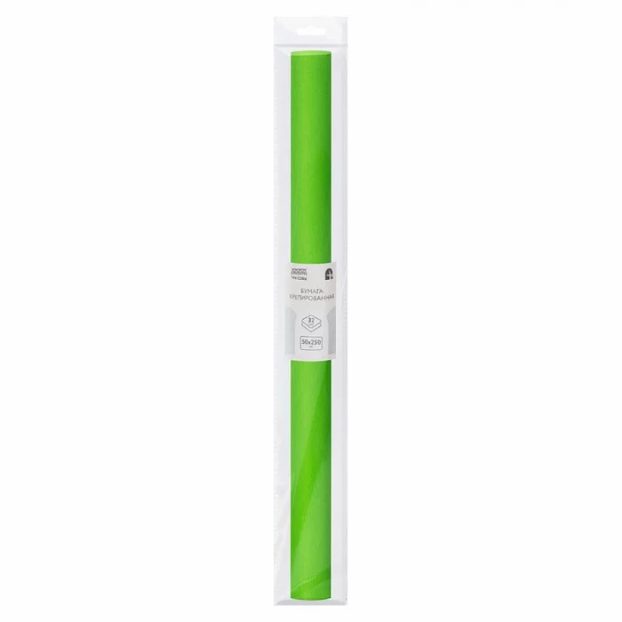 Бумага крепированная ТРИ СОВЫ, 50*250см, 32г/м2, зеленое яблоко, в рулоне, пакет с европодвесом 334858