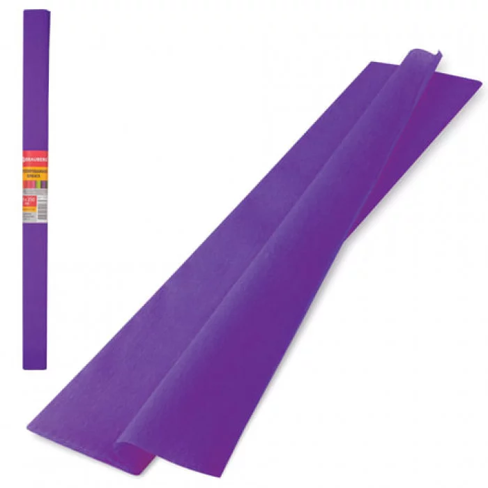 Цветная бумага крепированная плотная, растяжение до 45%, 32 г/м2, BRAUBERG, рулон, фиолетовая, 50х250 см, 126533