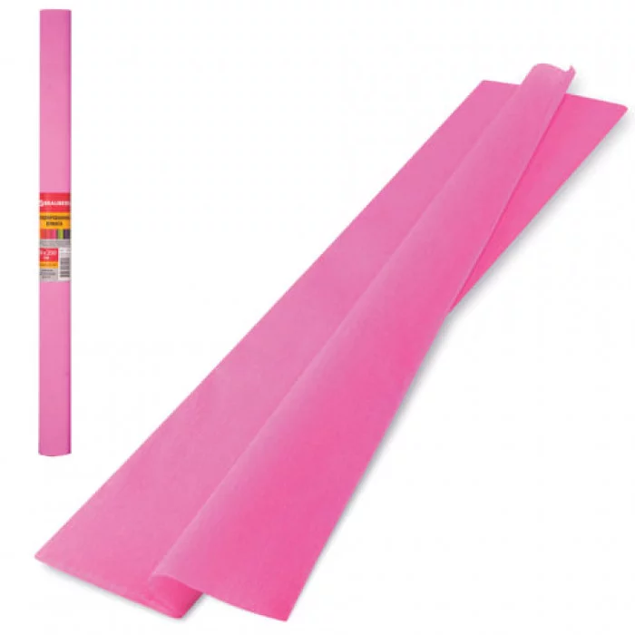 Цветная бумага крепированная плотная, растяжение до 45%, 32 г/м2, BRAUBERG, рулон, розовая, 50х250 см, 126532