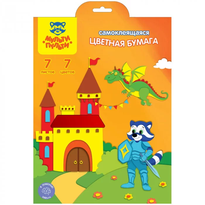 Цветная бумага самоклеящаяся A4, Мульти-Пульти, 7л., 7цв., в папке с европодвесом Мульти-Пульти 252588