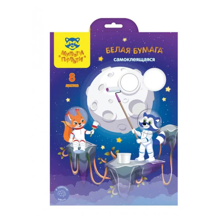 Белая самоклеящаяся бумага «Мульти-Пульти» серии «Енот в космосе» формата А4 прекрасно подходит для поделок, аппликаций и оформительских работ. Размер внутреннего блока: 200*285 мм. Белая бумага позволяет раскрашивать каждый элемент поделки или аппликации в любой цвет, используя краски, карандаши или фломастеры. Самоклеящаяся основа упростит создание поделки. В набор входит 8 листов.