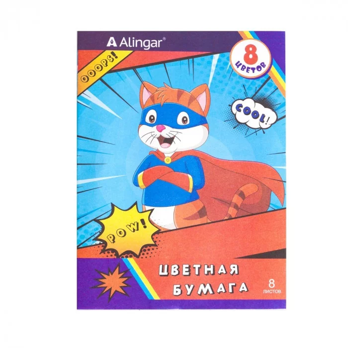 Бумага цветная Alingar, А4, немелованная, односторонняя, 8 листов, 8 цветов, на скрепке, "Комиксы" AL8279