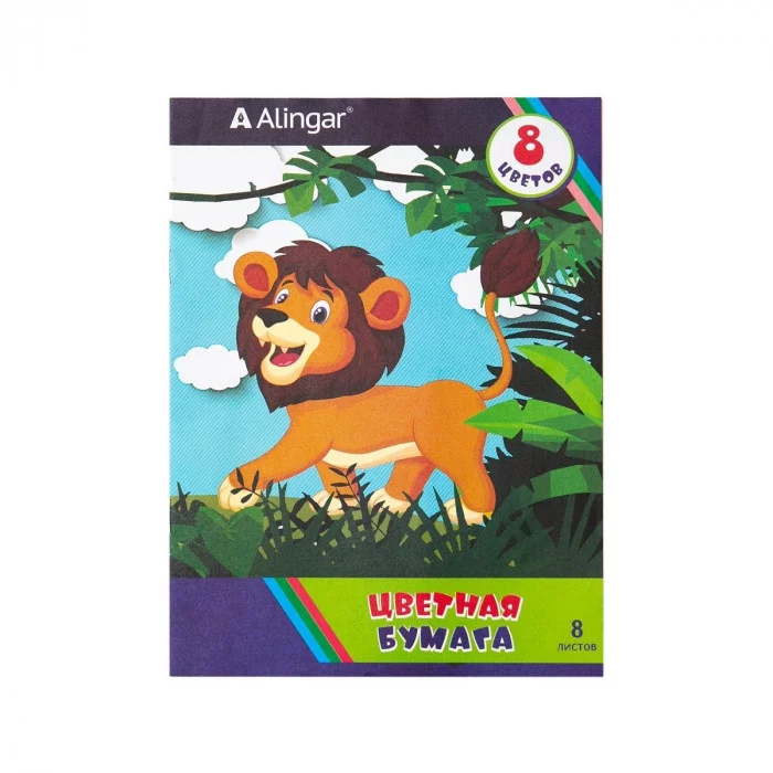 Бумага цветная Alingar, А4, немелованная, односторонняя, 8 листов, 8 цветов, на скрепке, "Львенок" AL6287