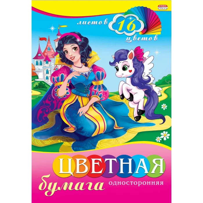 НАБОР ДЛЯ ДЕТ.ТВОР. Бумага цветная 16л. односторонняя А4 ПРИНЦЕССА И ПОНИ (16-9418) 16л., 16цв. 16-9418