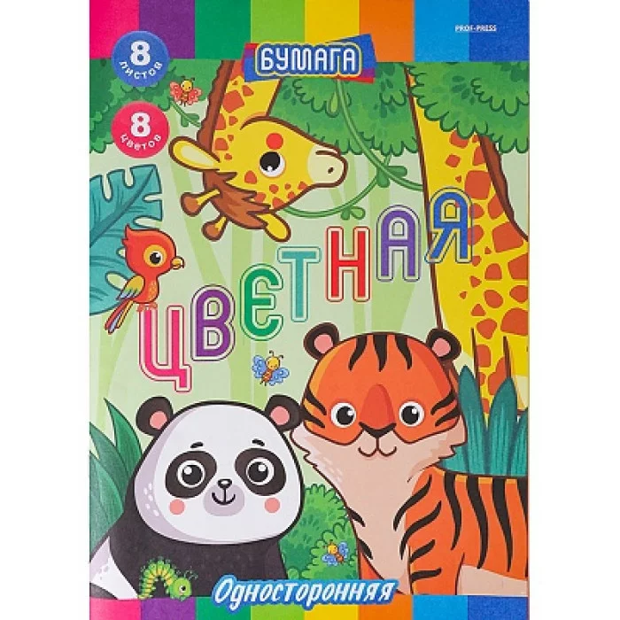 НАБОР ДЛЯ ДЕТ.ТВОР. Бумага цветная 8л. односторонняя А4 ЖИТЕЛИ ДЖУНГЛЕЙ(08-8933), 8л, 8цв 08-8933