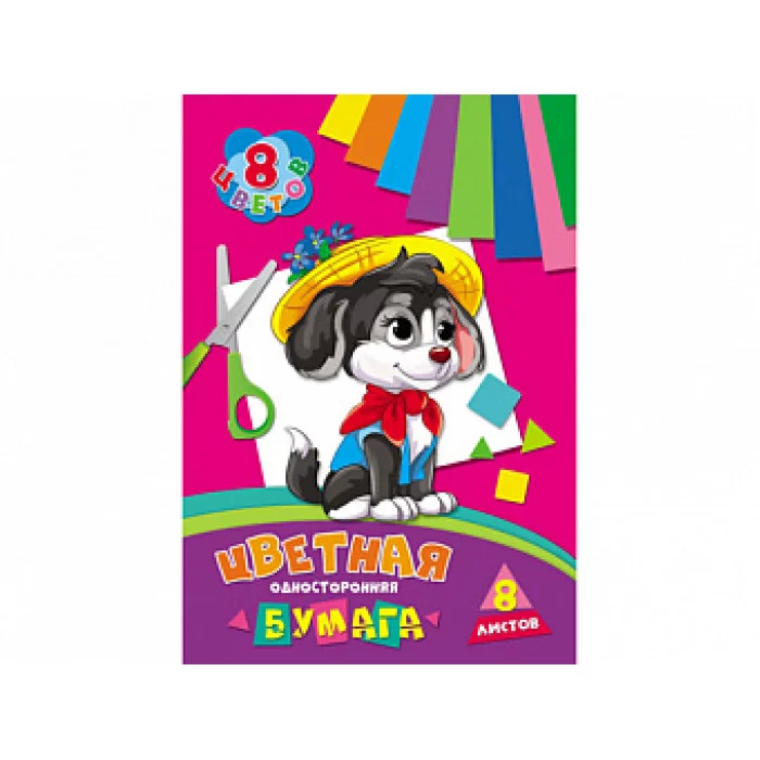 TM"Profit"НАБОР ДЛЯ ДЕТ.ТВОР.Бумага цветная 8л. одностор ЩЕНОК (08-9433) скр.8л. 8цв 166х240