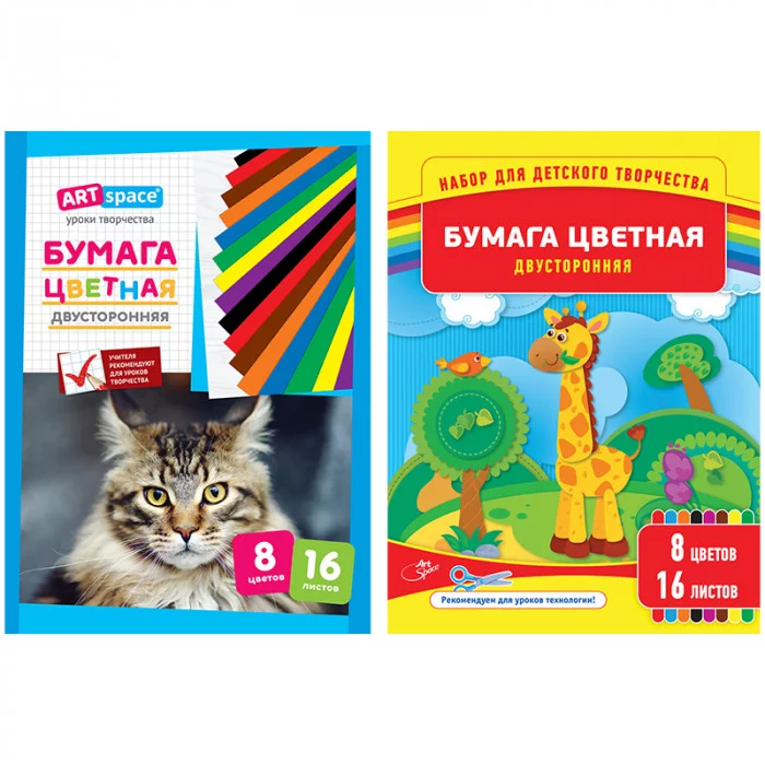Цветная бумага двусторонняя A4, ArtSpace, 16л., 8цв., газет., на скобе Спейс 152939