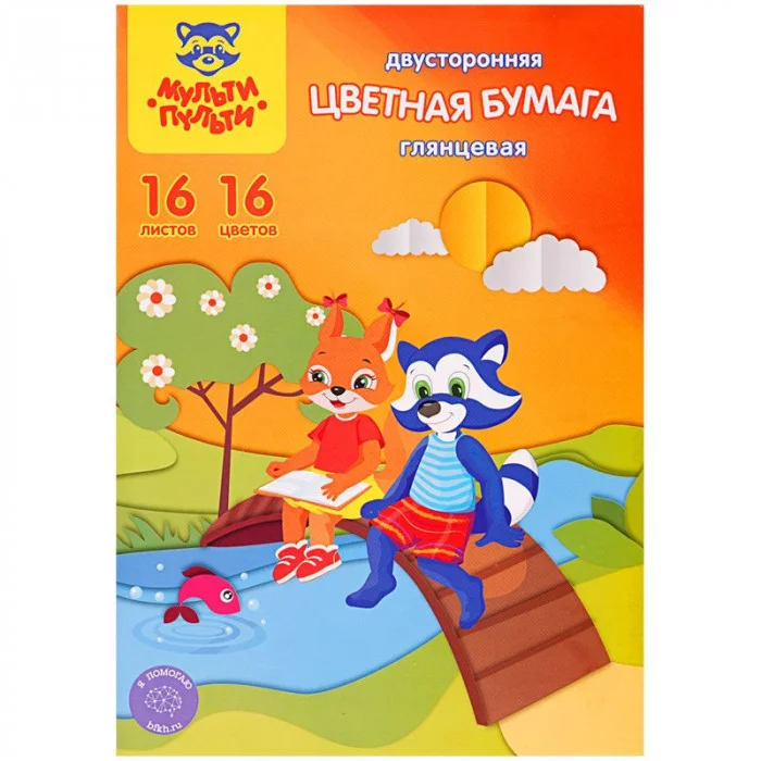 Набор двусторонней цветной бумаги «Мульти-Пульти» серии «Приключения Енота» идеально подойдет для творчества. Бумага имеет размер 200*280 мм. Плотность бумаги – 65 г/м2. В наборе представлено 16 ярких цветов мелованной бумаги на 16 листах. Бумага окрашена с двух сторон и упакована в папку из высококачественного целлюлозного картона. Товар сертифицирован для детей от 3 лет. Формат: А4; Количество листов: 16; Количество цветов: 16; Размер внутреннего блока: 200*280 мм; Плотность: 65 г/кв. м; Материал бумаги: мелованная.