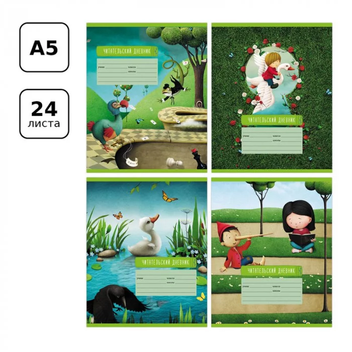 Читательский дневник BG «В гостях у сказки» А5 формата, 24 листа. Вид скрепления − скрепка. Обложка − мелованный картон. Внутренний блок − офсетный, 65 г/м2. Читательские дневники помогают тренировать память, учат анализировать и понимать произведение, находить главное и выражать мысли. Это очень полезно, особенно для учеников младших классов. Для взрослых такой дневник – это некая форма отчета о прочитанном для себя и дальнейшей рекомендации друзьям. Помимо стандартных полей, в которых надо заполнить дату чтения, краткое содержание, жанр и т.п., в изделиях есть поле для рисунка. Можно нарисовать персонажа или сюжет из книги. Некоторые правила заполнения читательского дневника: 1. Информацию о книге записывайте сразу после чтения. 2. Ведите дневник аккуратно, стараясь заполнить все разделы. 3. Если произведение понравилось и есть желание посоветовать друзьям, укажите причину. 4. Сделайте иллюстрацию к прочитанному, это задействует зрительную память. Количество листов: 24; Формат: А5.