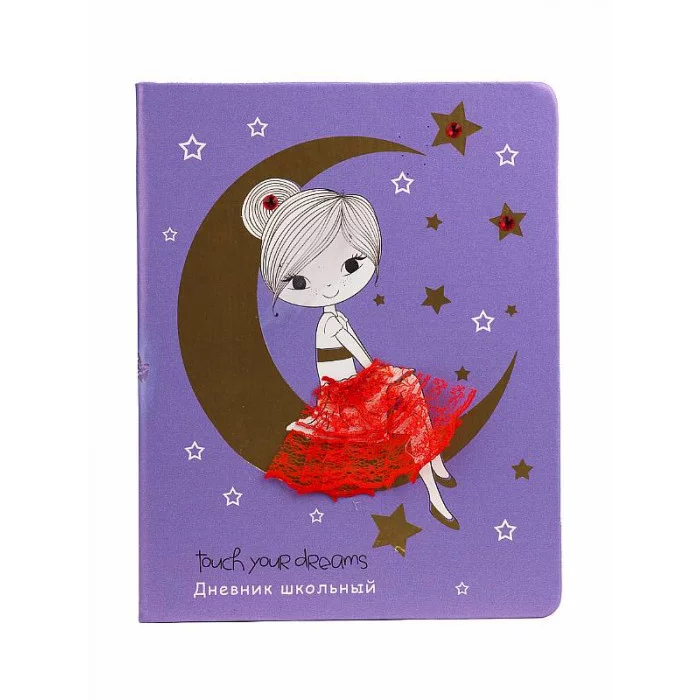 Дневник школьный 48л. Стразы.Аппликация гипюр, тисн золотом.ЛУННАЯ ДЕВОЧКА (Д48-7424)ляссе, 7БЦ Д4